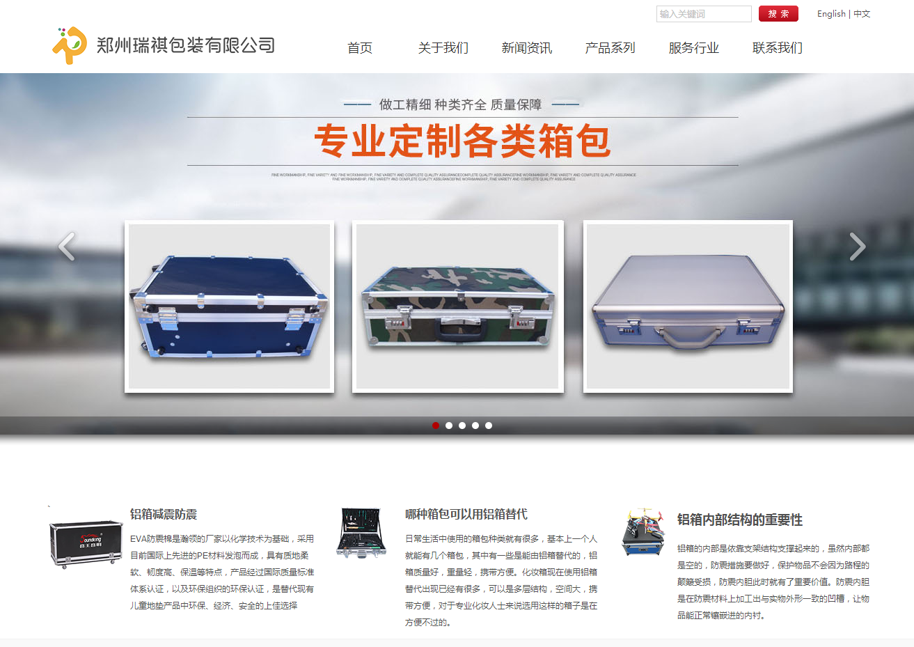 鄭州瑞祺包裝有限公司是一家大型專業(yè)生產(chǎn)各類鋁合金箱產(chǎn)品的企業(yè).公司創(chuàng)建于2009年,地址位于鄭州市四四環(huán)工業(yè)區(qū)占地面積約8000平米,擁有現(xiàn)代化的先進(jìn)生產(chǎn)設(shè)備和優(yōu)異的生產(chǎn)辦公環(huán)境!