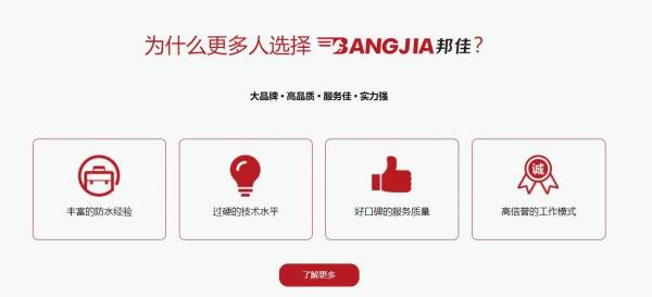 廣州邦*建筑工程有限公司選用我司企業(yè)防水補(bǔ)漏行業(yè)的網(wǎng)站優(yōu)化產(chǎn)品,其SEO關(guān)鍵詞有 廣州建筑防水,廣州外墻防水,金屬屋面防水補(bǔ)漏,廣州屋面防水,廣州衛(wèi)生間防水,廣州地下室防水,防水公司,屋面防水,防水補(bǔ)漏,防水堵漏,廣州家庭防水,廣州防水公司,邦佳防水。其特點是用很合適的展示方式、展示效果、站點框架,把客戶及其用戶很關(guān)心的問題突出表現(xiàn);并以簡潔明朗的設(shè)計風(fēng)格,清晰展現(xiàn)公司水平實力,確保一秒抓住目標(biāo)用戶眼球,給用戶留下良好的第一印象。廣州邦*建筑工程有限公司成立于2010年,是經(jīng)廣州市市場監(jiān)督管理局審核的有資質(zhì)的公司,其統(tǒng)一社會信用代碼:914401115**408198R。公司地址:廣州市白云區(qū)梅崗路1號大院北方工業(yè)廣州商務(wù)中心A棟1樓119室。