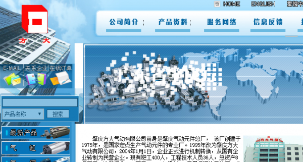肇慶方大氣動(dòng)有限公司前身是肇慶氣動(dòng)元件總廠, 該廠創(chuàng)建于1975年,是國家定點(diǎn)生產(chǎn)氣動(dòng)元件的專業(yè)廠。1995年改為肇慶方大氣動(dòng)有限公司,2004年1月1日,企業(yè)正式進(jìn)行機(jī)制轉(zhuǎn)換,從國有企業(yè)轉(zhuǎn)制為民營企業(yè)。現(xiàn)有職工400人,工程技術(shù)人員36人,總資產(chǎn)8仟萬元,注冊資金5610萬元。1999年通過ISO質(zhì)量保證體系認(rèn)證,公司主營氣缸、氣閥、氣源三大件及成套設(shè)備。產(chǎn)品多次被評為“省優(yōu)”、“部優(yōu)”、“名優(yōu)”產(chǎn)品,其中,“方大”牌氣動(dòng)元件被評為廣東省名牌產(chǎn)品。方大公司是全國氣動(dòng)行業(yè)中產(chǎn)品品種最齊全、規(guī)格最多的氣動(dòng)元件專業(yè)生產(chǎn)公司,多年來公司各項(xiàng)主要經(jīng)濟(jì)指標(biāo)在國內(nèi)氣動(dòng)行業(yè)中處于前列,在國內(nèi)具有重要的影響力。