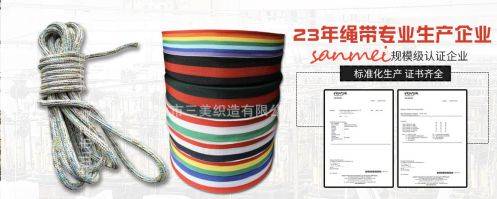 中山市*美織造有限公司生產(chǎn)加工各類PP、滌綸、尼龍、棉、線的松緊繩、紙袋繩、織帶、松緊帶、圓扁鞋帶、提花帶、尼龍包邊帶、各類包芯繩帶、金銀線帶、縫紉線、箱包輔料、戶外用品、寵物用品及輔料、運(yùn)動(dòng)用品、康復(fù)用品及輔料等產(chǎn)品。