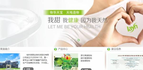 桂林*茵生物科技股份有限公司成立于2000年11月,是一家專業(yè)從事天然健康產(chǎn)品研發(fā)、生產(chǎn)及銷售的科技型、外向型民營(yíng)企業(yè)。公司在植物提取行業(yè)具有20多年的經(jīng)驗(yàn),是全球植物提取行業(yè)的領(lǐng)軍企業(yè),也是國(guó)內(nèi)植物提取行業(yè)的第一家上市公司。公司致力于打造全球領(lǐng)先的天然健康產(chǎn)品平臺(tái),提高人們健康水平,讓生命更美好!