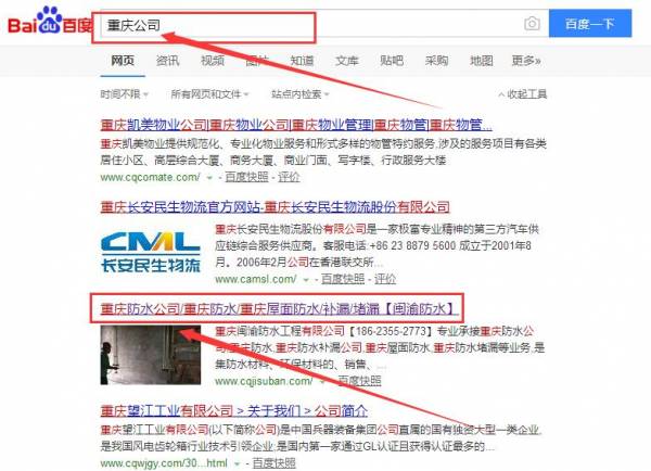 我們公司與重慶閩渝防水工程有限公司合作中,對(duì)這個(gè)公司所經(jīng)營(yíng)的防水補(bǔ)漏這個(gè)行業(yè)的關(guān)鍵詞搜索排名積累了豐富的經(jīng)驗(yàn);同時(shí)在該行業(yè)的關(guān)鍵詞搜索排名等多元化的防水補(bǔ)漏領(lǐng)域中也有很多的成功的案例;但愿通過(guò)我們的合作,能夠幫助到合作伙伴在同行業(yè)中遙遙領(lǐng)先。