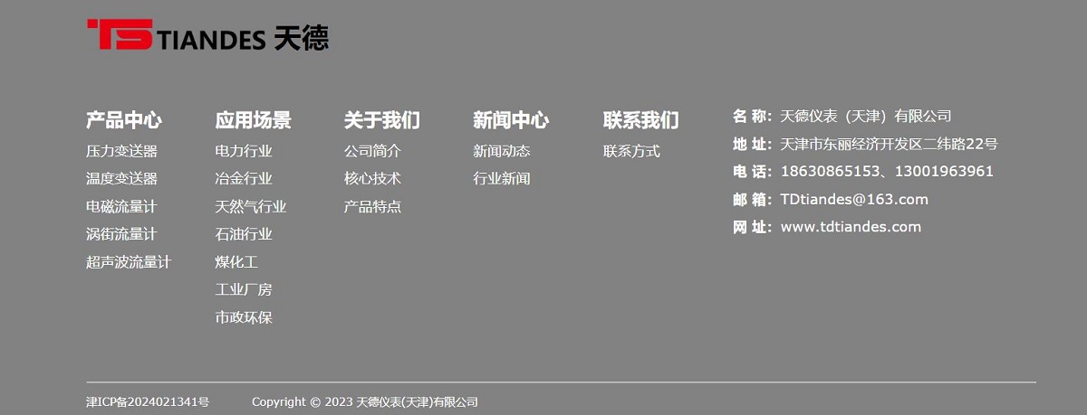 天德儀表(天津)有限公司網(wǎng)站制作案例開發(fā)