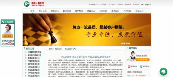 上海瑞科翻譯有限公司選用我司企業(yè)翻譯行業(yè)的網(wǎng)站優(yōu)化產(chǎn)品,其SEO關(guān)鍵詞有 南匯區(qū)翻譯公司,上海南匯區(qū)翻譯公司。其特點是用很合適的展示方式、展示效果、站點框架,把客戶及其用戶很關(guān)心的問題突出表現(xiàn);并以簡潔明朗的設(shè)計風格,清晰展現(xiàn)公司水平實力,確保一秒抓住目標用戶眼球,給用戶留下良好的第一印象。上海瑞科翻譯有限公司成立于2008年,是經(jīng)上海市市場監(jiān)督管理局審核的有資質(zhì)的公司,其統(tǒng)一社會信用代碼:91310101676276007K 。公司地址:上海市中山南路969號谷泰濱江大廈1203室。
