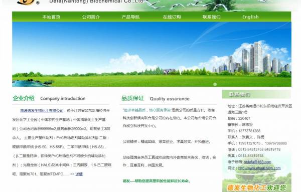南通*發(fā)生物化工有限公司選用我司企業(yè)中西藥品行業(yè)的網(wǎng)站優(yōu)化產(chǎn)品,其SEO關(guān)鍵詞有 硬脂酰苯甲酰甲烷 , 二苯甲酰甲烷 , 光穩(wěn)定劑 , N-苯基馬來(lái)酰亞胺 , 紫外線吸收劑。其特點(diǎn)是用很合適的展示方式、展示效果、站點(diǎn)框架,把客戶及其用戶很關(guān)心的問(wèn)題突出表現(xiàn);并以簡(jiǎn)潔明朗的設(shè)計(jì)風(fēng)格,清晰展現(xiàn)公司水平實(shí)力,確保一秒抓住目標(biāo)用戶眼球,給用戶留下良好的第一印象。南通*發(fā)生物化工有限公司成立于2003年,是經(jīng)南通市市場(chǎng)監(jiān)督管理局審核的有資質(zhì)的公司,其統(tǒng)一社會(huì)信用代碼: 9132062375587**47N。公司地址:江蘇省南通市如東縣洋口化工工業(yè)園。
