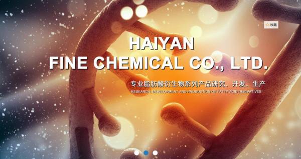 海鹽縣*細化工有限公司前身海鹽縣精細化工廠,始建于一九七五年,長期從事天然動植物油脂化工衍生物產(chǎn)品的研究、開發(fā)、生產(chǎn)。公司技術(shù)力量雄厚,承擔國家星火計劃項目"脂肪酸衍生物系列產(chǎn)品開發(fā)及產(chǎn)業(yè)化",被評為"浙江省高新技術(shù)企業(yè)",產(chǎn)品暢銷全國各地,并出口國外,深受用戶信賴。
