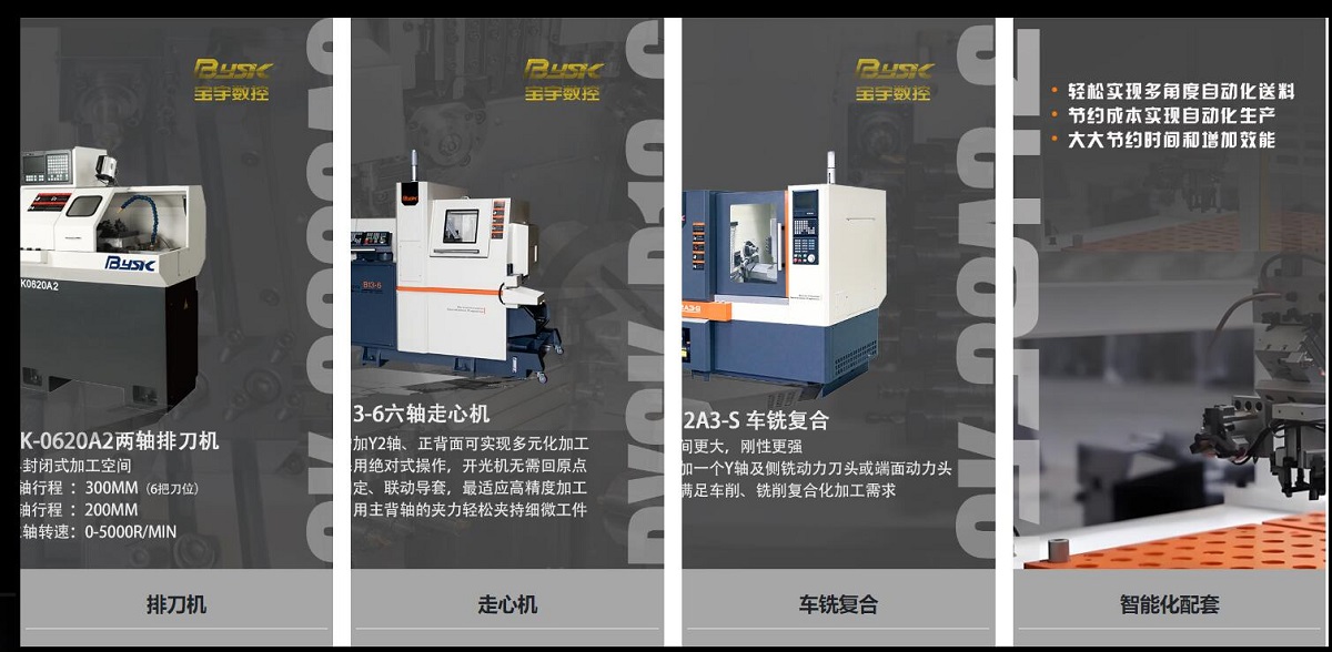 公司專業(yè)生產(chǎn)數(shù)控走心機(jī)、排刀式數(shù)控車床和車銑復(fù)合中心、車銑復(fù)合機(jī)床、自動(dòng)化雙主軸車床等產(chǎn)品。