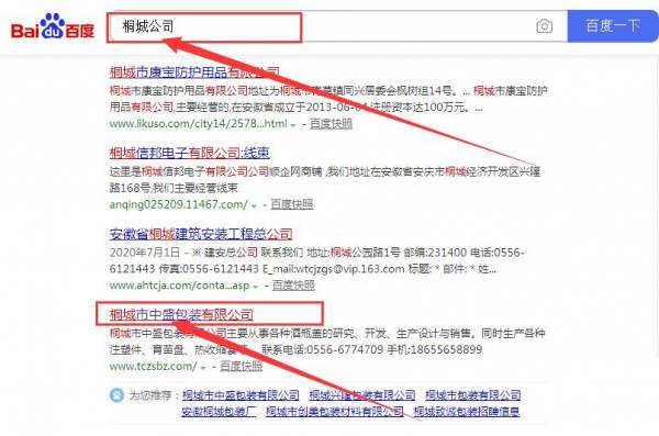 桐城市中*包裝有限公司與我司做快速排名項目