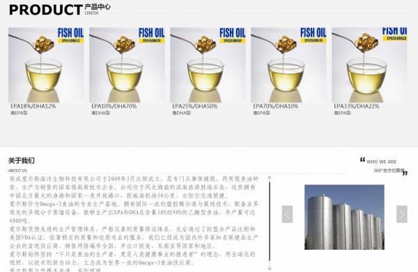 榮成愛*斯海洋生物科技有限公司選用我司企業(yè)食品行業(yè)的網(wǎng)站優(yōu)化產(chǎn)品,其SEO關(guān)鍵詞有 魚油,精制魚油,多烯魚油,榮成魚油,山東魚油。其特點(diǎn)是用很合適的展示方式、展示效果、站點(diǎn)框架,把客戶及其用戶很關(guān)心的問題突出表現(xiàn);并以簡潔明朗的設(shè)計風(fēng)格,清晰展現(xiàn)公司水平實(shí)力,確保一秒抓住目標(biāo)用戶眼球,給用戶留下良好的第一印象。榮成愛*斯海洋生物科技有限公司成立于2009年,是經(jīng)榮成市市場監(jiān)督管理局審核的有資質(zhì)的公司,其統(tǒng)一社會信用代碼:9137108268**437216。公司地址:山東省威海市榮成市石島工業(yè)園龍騰北路109號。