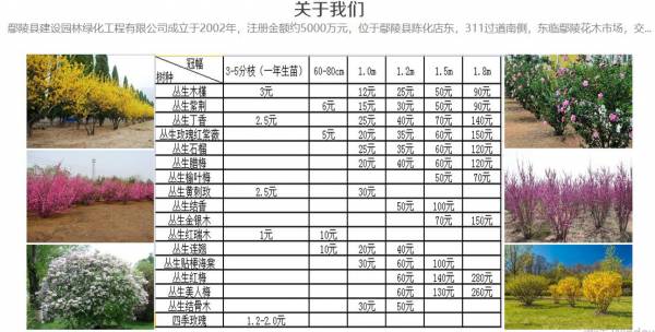 我公司目前是全國(guó)**的玫瑰紅紫薇種植地之一,公司有苗圃約5000余畝,主要經(jīng)營(yíng)叢生、獨(dú)桿、高桿以及造型玫瑰紅紫薇及少量紅火箭、紅火球紫薇等不同類(lèi)型及規(guī)格的苗木。主要產(chǎn)品有叢生玫瑰紅紫薇、叢生石榴、叢生木槿、叢生紫荊、叢生丁香、叢生臘梅、叢生榆葉梅、叢生黃刺玫、叢生結(jié)香、叢生金銀木、叢生紅瑞木、叢生連翹、叢生貼梗海棠、叢生紅梅、叢生美人梅、叢生接骨木等花灌木,主要規(guī)格為冠幅1.5m、1.8m的工程用苗和苗圃規(guī)劃用苗。公司還提供2018年叢生類(lèi)花灌木的較新價(jià)格。