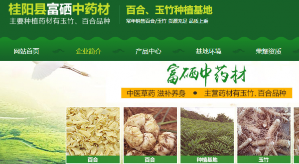 桂陽(yáng)縣富硒中藥材有限公司位于歷史文化悠久、風(fēng)景宜人、 氣候溫潤(rùn)的湖南省桂陽(yáng)縣。公司種植面積達(dá)到1000余畝,主要種植藥材有玉竹、百合品種。其中玉竹種植面積達(dá)800余畝,三年一產(chǎn)一收,計(jì)能產(chǎn)鮮貨約700萬斤,通過天然日曬干貨約有200萬斤。百合種植面積200余畝,一年一產(chǎn)一收,計(jì)約產(chǎn)鮮貨 100萬斤,通過天然日曬約為30萬斤。 2013年11月被桂陽(yáng)人民政府評(píng)為桂陽(yáng)縣農(nóng)業(yè)產(chǎn)業(yè)化龍頭企業(yè)。桂陽(yáng)縣富硒中藥材有限公司以合作社及家庭模式共存,始終秉承“誠(chéng)信,雙贏,綠色,生態(tài)”的發(fā)展理念。堅(jiān)持以科 技為依托,以市場(chǎng)為導(dǎo)向,產(chǎn)學(xué)研相結(jié)合,按照生態(tài)化、資源化、無害化的原則進(jìn)行生態(tài)藥材種植和林下生態(tài)養(yǎng)殖,以追求“綠色原生態(tài)”中藥材 為目標(biāo),建成綠色生態(tài)種植和休閑觀光一體,覆蓋研發(fā),種植,加工, 銷售全產(chǎn)業(yè)鏈的藥材 公司在經(jīng)營(yíng)上貫徹“人本、誠(chéng)信、為民”的服務(wù)宗旨,奉行“規(guī)范管理、質(zhì)量為上、信譽(yù)至上、共創(chuàng)雙贏”的企業(yè)理念。
