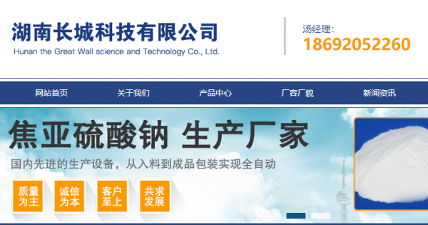 湖南長(zhǎng)城科技有限公司選用我司企業(yè)寵物用品網(wǎng)站案例,其網(wǎng)站建設(shè)的特點(diǎn)是食品添加劑無(wú)水亞硫酸鈉、食品添加劑焦亞硫酸鈉。專(zhuān)注于提升品牌形象設(shè)計(jì)與高端網(wǎng)站制作服務(wù),對(duì)品牌發(fā)展戰(zhàn)略進(jìn)行全面提升并以獨(dú)到的創(chuàng)意、專(zhuān)業(yè)的眼光、高水平的執(zhí)行助您提升企業(yè)品牌形象。湖南長(zhǎng)城科技有限公司成立于2004年,是經(jīng)祁東市市場(chǎng)監(jiān)督管理局審核的有資質(zhì)的公司,其統(tǒng)一社會(huì)信用代碼:91430426591027757B。公司地址:湖南省祁東歸陽(yáng)工業(yè)集聚區(qū)。